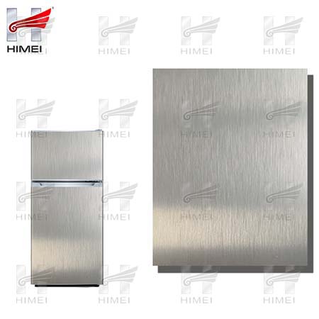 家電用覆膜鋼板,就是鋼板的基材上面覆了一層PET膜/PVC膜,然后通過覆合貼覆而成,主要應用在各類家電外殼裝飾上,例如冰箱、洗衣機、電飯煲等外殼部件。覆膜是一種物理工藝,一層膜一層鋼板經過高溫高壓壓合而成。