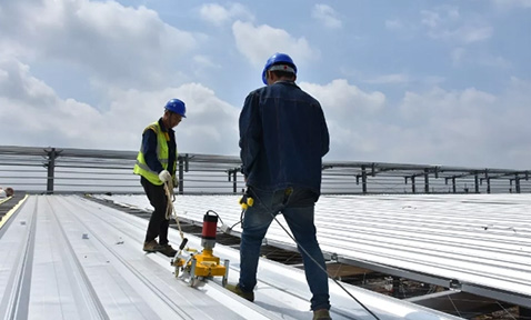 TPO復合融合瓦施工時,接縫處理是確保屋面防水性能和整體美觀的關鍵環節,通常可采用以下方法處理:預留搭接邊并熱風焊接:TPO復合融合瓦是將可外露的 TPO 防水卷材與鍍鋅卷鋼貼合為一體的復合板。施工時,可在鋼板的搭接處預留 TPO 片材搭接邊,然后使用熱風焊接機對搭接處進行焊接。這種方法能有效消除原有剛性搭接滲漏的風險,保證整個屋面防水的一體性,可參照單層屋面的傳統做法進行操作...